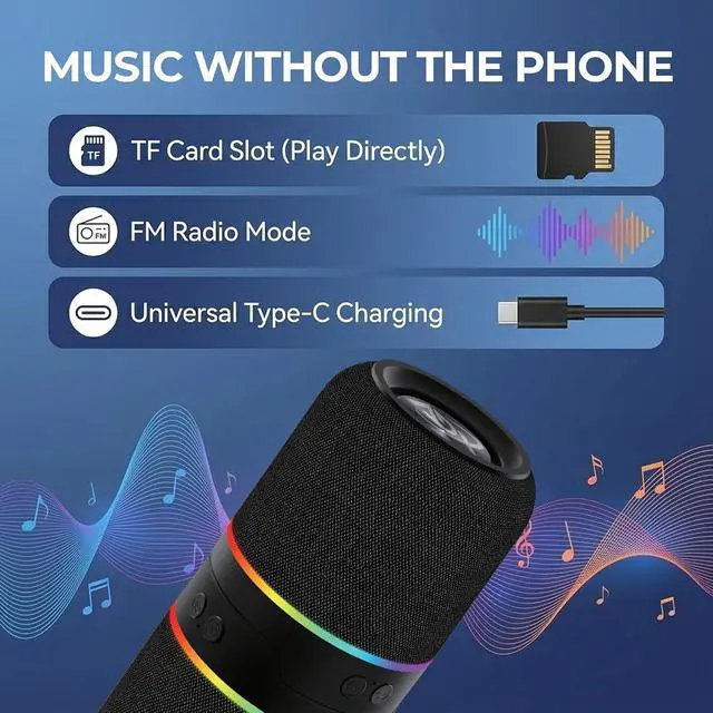 Reliable Offline Playback & Certified Safety: Enjoy 36 hours of continuous entertainment via the 2500mAh battery, or switch to TF card and FM modes when your phone is unavailable. Fully FCC, CE, and RoHS compliant, this portable audio hub offers peace of mind with safe, interference-free operation and efficient Type-C charging.