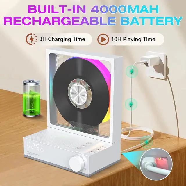 HOTT C229 Desktop CD player Rechargeable Battery: Small CD Players for Home built-in 4000mAh large capacity battery, takes about 3h to be fully charged low power consumption design, 10-12 hours