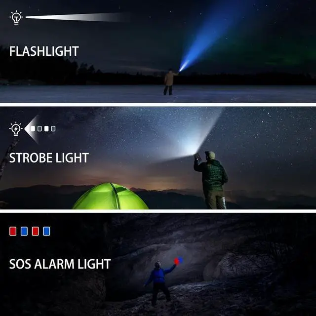 Emergency Light: the bottom has a super bright flashlight & strobe light, lighting distance up to 30 M, SOS alarm decibel up to 110, while there are red and blue flashing lights, in case of emergency, can quickly attract people's attention around