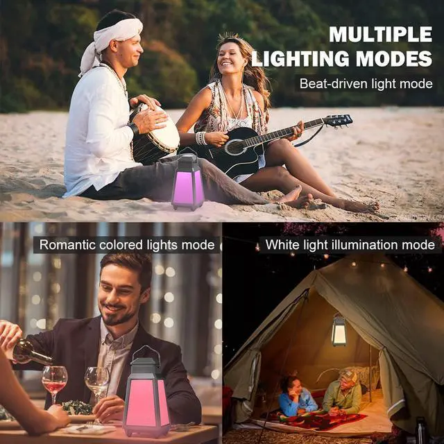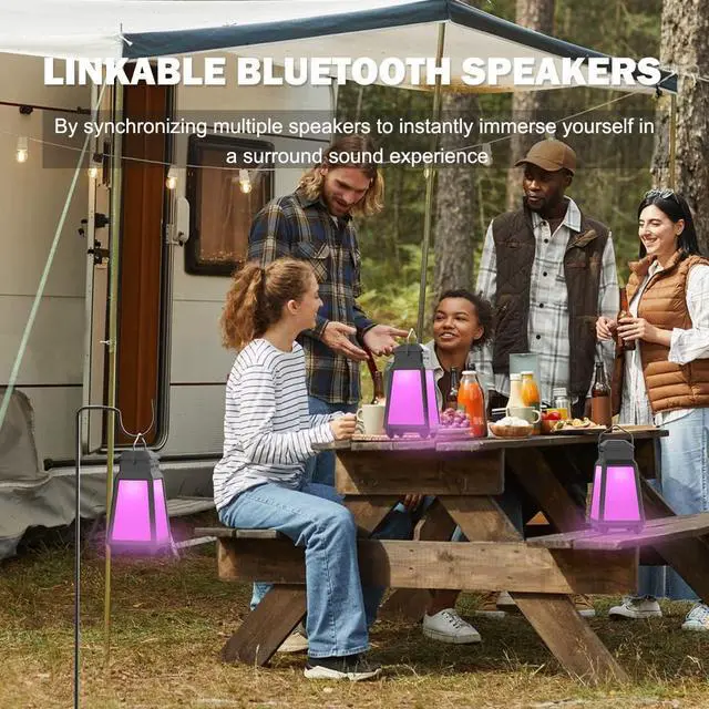 : What you get is not just a speaker, but a combination of outdoor tent light, ambient light, and sleep night light. It has three lighting modes, namely music rhythm light, white lighting, and ambient colorful light. The ambient colorful light provides you with 6 colors of light, and each color can be separately adjusted for brightness to meet your various scene requirements.
