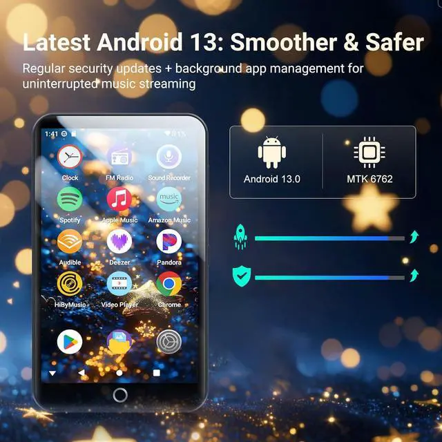 96GB HIGH CAPACITY - Android MP3 Player has built-in storage space of 3GB RAM and 32GB ROM to ensure smooth running of the program. In addition, it comes with a 64GB SD card to store all the songs you've cherished over the years, freeing up your phone's memory. The MP3 player also comes with a memory expansion slot of up to 1TB capacity to fulfill users' storage needs.