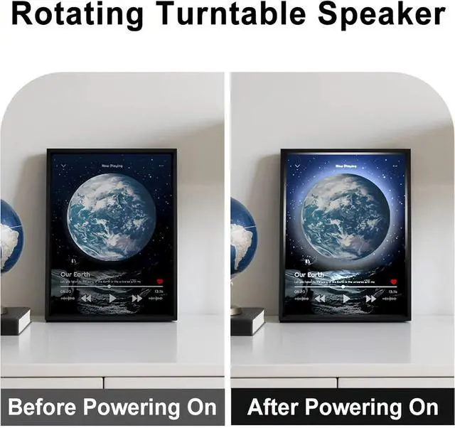 Integrating Artwork With Speakers: The design of this music picture frame speaker draws inspiration from classic turntables and majestic natural landscapes. It serves as both an exquisite decorative piece and a Bluetooth speaker. This photo frame perfectly combines modern technology with the classic aesthetics of vinyl records. Soothing light and music create a cozy atmosphere for bedrooms, living rooms, or offices