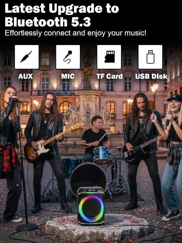 [Dynamic LED Light Show That Moves with the Music]Light up the night! The built-in LED party lights pulse and change color with the beat, creating a vibrant visual experience that matches your music. Choose from multiple light modes strobe, fade, or rhythm sync and watch your party big speaker become the centerpiece of every event.
