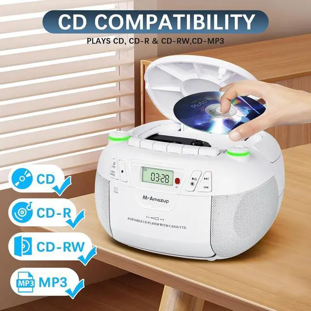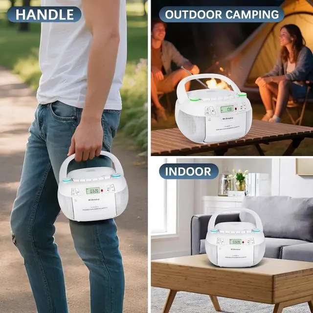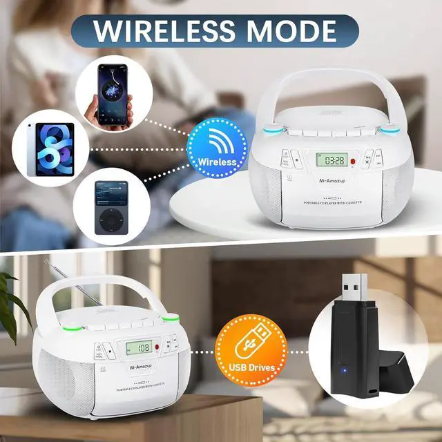 Ultimate All-in-One Music SystemExperience CDs, cassettes, AM/FM radio, Bluetooth, USB, and TF card playback in one powerful boombox. Perfect blend of retro charm and modern tech for true music enthusiasts who value versatility Note: Long press the light button and the light can be turned off