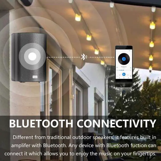 BLUETOOTH CONNECTIVITY - Different from passive outdoor speakers, it features built in amplifer with Bluetooth. Any device with Bluetooth function can connect it which allows you to enjoy the music on your fingertips.