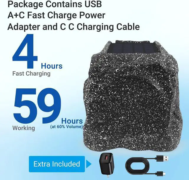 Appearance: Rock-like speakers have a sturdy and durable appearance. The outer shell is made of fiberglass resin material, with a realistic rock appearance design that can blend perfectly with your garden, patio, terrace, and lawn.