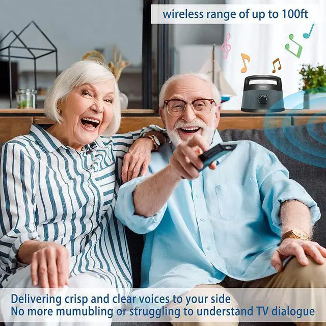 RF wireless TV speaker with voice highlighting and Tone(treble/normal/bass) adjustment for improved voice clarity on TV and movies, it makes each word intelligible, perfect for seniors, couples, families or anyone who wants to optimize TV volume clearly, comfortably and conveniently. - Not Bluetooth device.