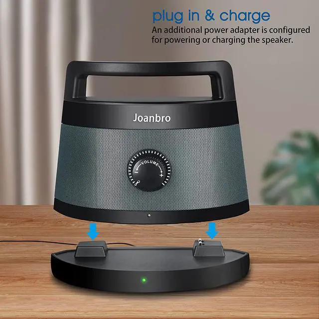 Wireless handy speaker with two charging methods, one is charged by placing onto the transmitter base, the other is connected to AC adapter for charging / power. It provides superb clearly voice with a wireless range of up to 100 feet, you can take the wireless amplified speaker outdoor or anywhere in the house so you don't miss your favorite TV programs.