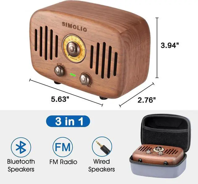 Perfect Companion and Best Gift Idea, Easy to Carry -- Take you close to nature and immerse yourself in music. This wooden retro Bluetooth speaker is a perfect companion for you to enjoy satisfied leisure time and a great gift for your families and friends. With a portable case, you are free to take it outside for parties, yards, garages, campfires,beaches or anywhere else imaginable.