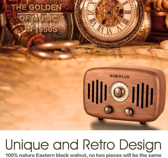 Vintage Bluetooth Speaker with Unique and Elegance Design, Art & Collection -- 100% natural Eastern black walnut. No two pieces will be the same. Each heartwood piece is exquisitely crafted to embrace the natural characteristics of the wood, giving it an elegance and texture and proving to be a worthy investment, bringing a touch of sophistication into each home.