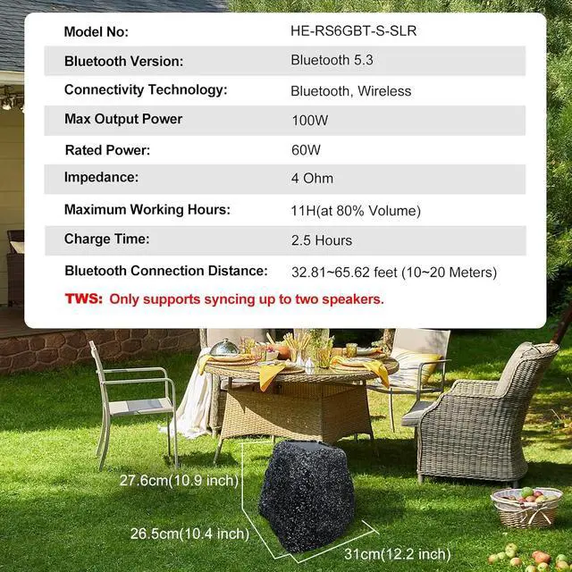 APPEARANCE: These rock-like speakers have a rugged and durable appearance, the casing is made of fiberglass resin material with a realistic rock-look design that will blend in perfectly with your garden, patio, deck and lawn.