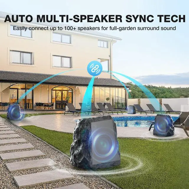 Effortless Multi-Speaker Pairing: Automatically sync and connect with up to 100 BlitzRock wireless rock speakers in just double-click for seamless whole-yard surround sound