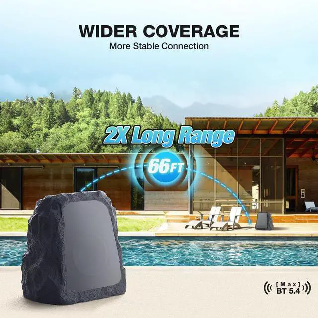 Advanced BT5.4 Wireless Technology: These outdoor speakers wireless maintains a stable connection up to 98.4 ft - no more annoying dropouts