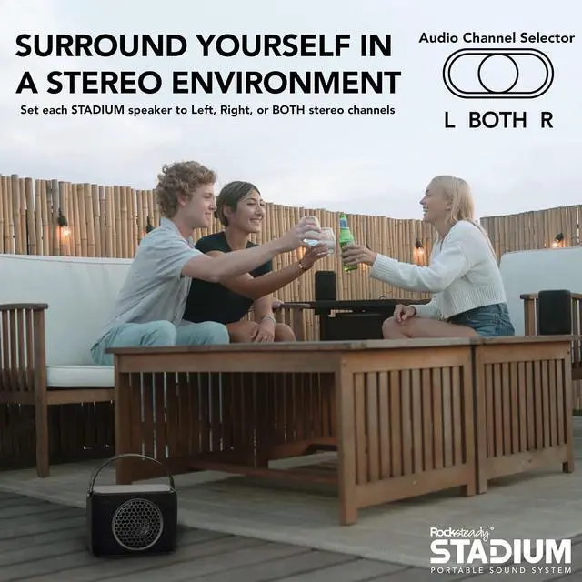PORTABLE POWERHOUSE: Rocksteady STADIUM 2.1 Speaker & Subwoofer Combo packs Big Speaker presence & clarity in a versatile wireless sound system. Combo pack with 2 portable Bluetooth speakers and the world's first portable Bluetooth subwoofer.