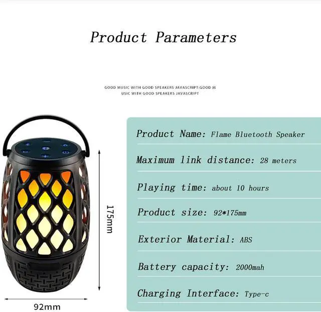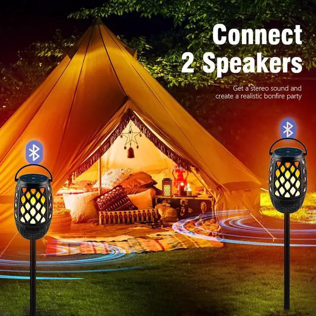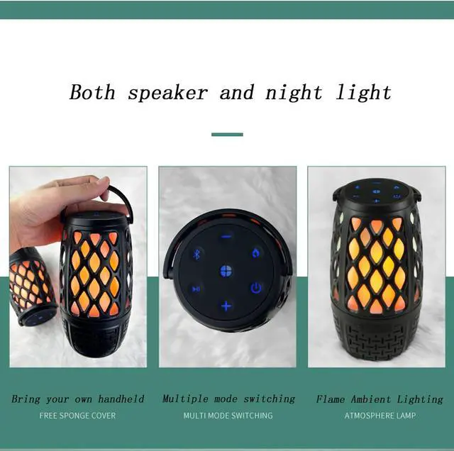OUTDOOR FLAME BLUETOOTH SPEAKER: The Outdoor Flame Speaker and Light combines excellent audio capabilities with beautiful lights that flicker and move like dancing flames. Bluetooth effective connection distance is about 32 feet, enjoy wireless freedom just like dancing.Portable Design: Compact and lightweight, this Bluetooth speaker is designed for your on-the-go lifestyle. Carry your music with you wherever you go - be it your kitchen, beach, or a picnic.
