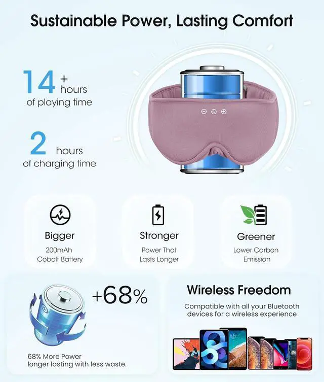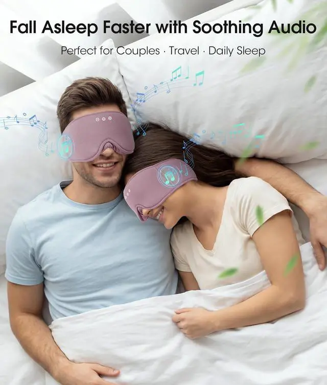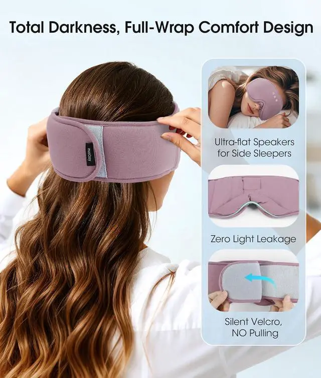 Comfortable Fit Designed for Side Sleepers - Built with ultra-thin stereo speakers and a fully wrapped design, this sleep mask reduces pressure on ears and stays in place as you turn. Ideal for side sleepers who want audio comfort without bulky headphones or in-ear discomfort