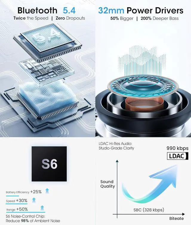 Stable Bluetooth 5.4 with Clear Audio - Equipped with Bluetooth 5.4 for fast pairing, low-latency performance, and stable connections. Enjoy clear, immersive sound with surround-style depth for music, podcasts, meditation tracks, or hands-free calls using the built-in microphone