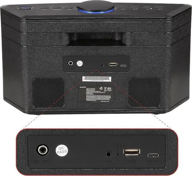 CONVENIENT FEATURES AT YOUR FINGERTIPS: The AIWA Exos 5 is designed with user convenience in mind. The built-in LCD not only shows the time but also allows you to set four alarms, ensuring you stay on schedule. The included IR remote control provides effortless control over the speaker's functions, allowing you to adjust settings, switch between modes, and fine-tune your audio experience from across the room