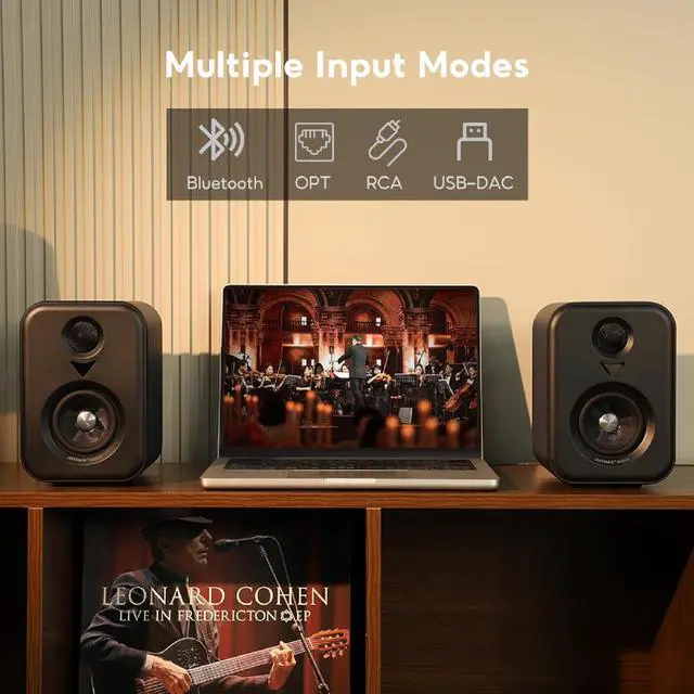 Bluetooth 5.3: Advanced Bluetooth technology ensures easy wireless connection with various devices, along with wired optical and RCA inputs for versatility