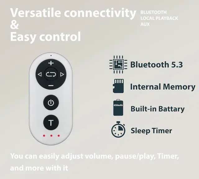[SMARTER ALTERNATIVE TO SLEEP HEADPHONES AND MASKS] SOMNUS Pro is a pillow speaker designed for both convenience and comfort. Connect easily to SOMNUS Pro via Bluetooth for an immersive audio experience. lts design aims to reduce sound leakage, allowing you to enjoy your bedtime without disturbing your sleeping partner. it offers two play modes.local MP3 and Bluetooth 5.3