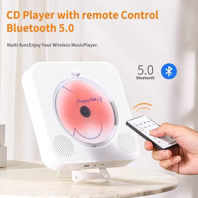 (Idea for gift/Home Decor)With its removable cover and sleek; minimalist design; this CD player is easy to use and adds a touch of elegance to any space; It also features a remote control for convenient operation; Whether you're doing household chores or relaxing at home; this CD player is suitable for any location in your house; Enjoy your favorite songs while going about your daily activities