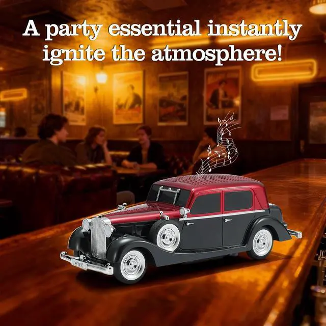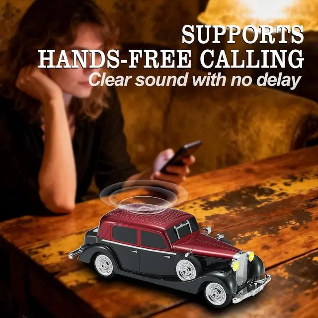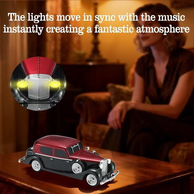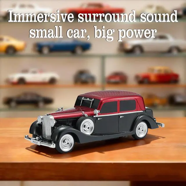 Retro Car Model Design, Collectible Appearance Featuring a classic vintage car design, with tire details on the front and sides, it boasts a strong retro feel. It's not just a Bluetooth speaker, but also a collectible car model