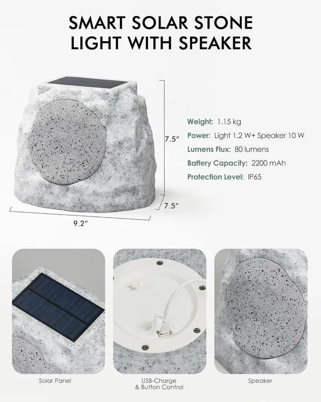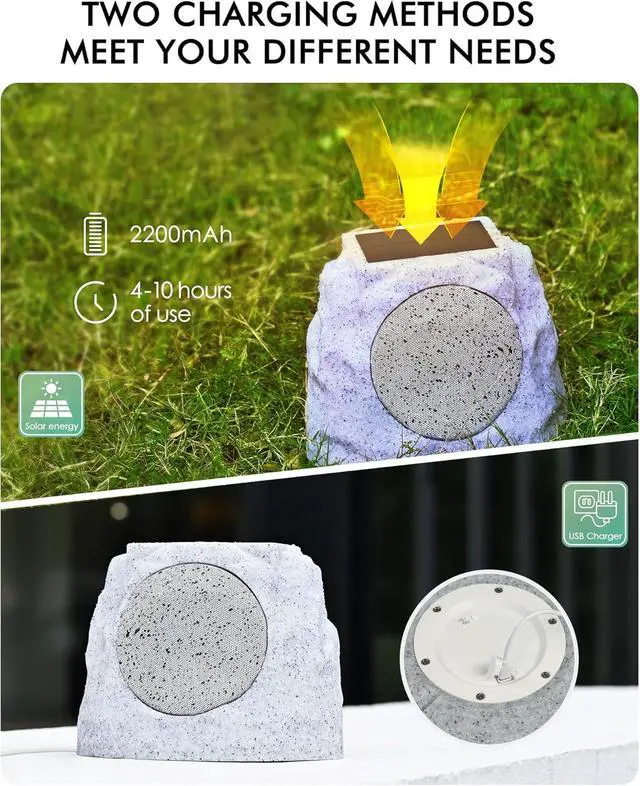 Portable and DurableCompact and easy to carry, these stone-shaped speakers are built to last and blend naturally into outdoor environments like patios, gardens, and yards.