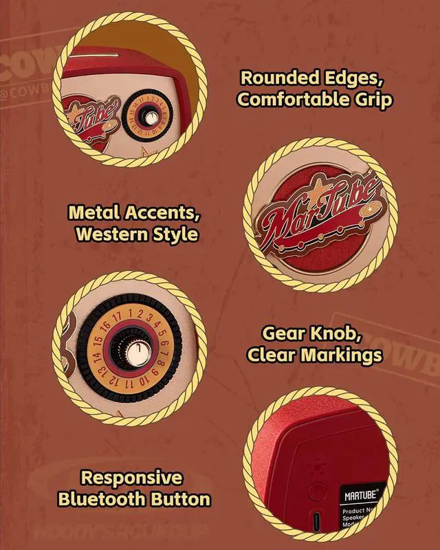 CUTE RETRO WESTERN LOOK: Say howdy to your new vintage buddy! This speaker boasts an endearing retro western design that transports you straight back to the nostalgic '50s. With its rustic charm and classic finish, its not just a speaker; its a charming piece of western art that brings a touch of the wild west into any room.