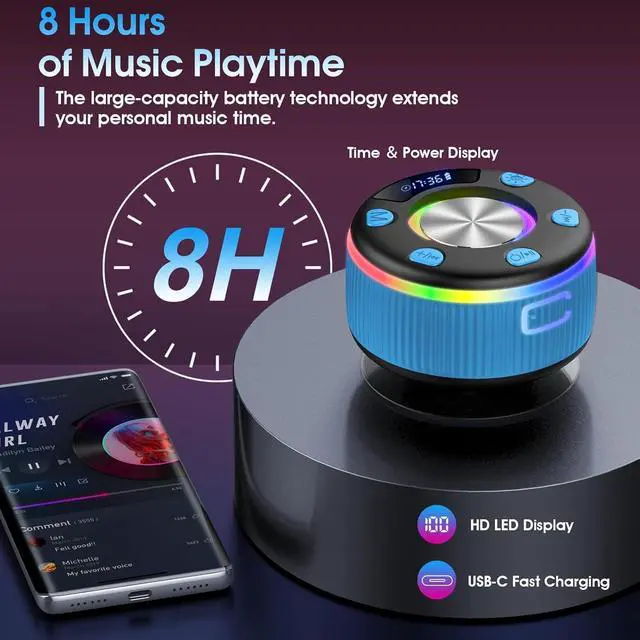 2025 Bluetooth 5.3 Technology and Wide Compatibility: Xuevcn shower Bluetooth speaker features advanced Bluetooth 5.3 technology, offering 50% faster connection speed, 30% better processing, and 80% enhanced stability compared to Bluetooth 5.0. This provides smoother music playback with a connection range of up to 49 feet. The waterproof shower speaker is compatible with smartphones running iOS 9.0/Android 5.0 or later, as well as all devices supporting Bluetooth 4.0 or newer versions