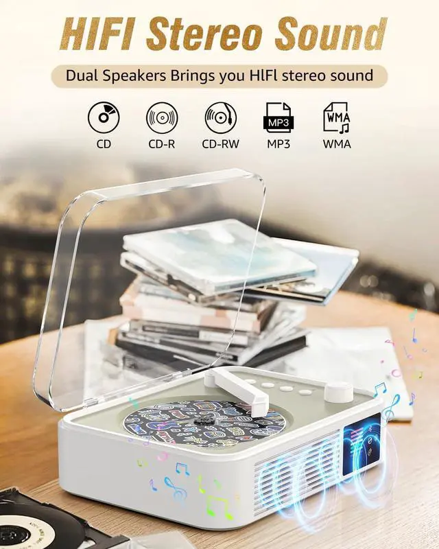 HIFI Stereo Sound- Desktop CD player adopts a fully sealed speaker design and is equipped with two 16-core 5-watt full-range speakers. This design makes the sound quality delicate and the sound fuller. The independent cavity structure can create a native listening effect, allowing you to enjoy live-level music effects