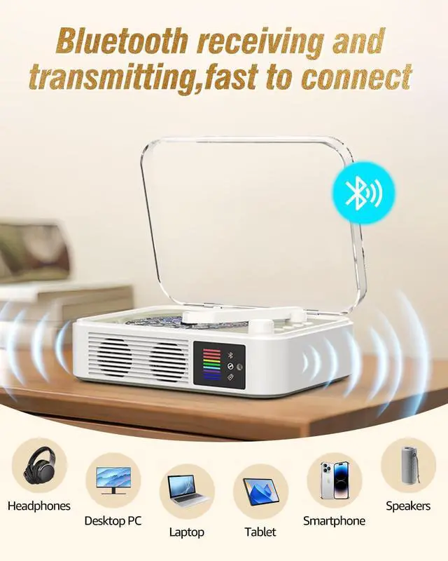Exquisite appearance CD player- RetroAudio retro CD player uses a transparent dust cover to effectively protect the optical drive while allowing you to enjoy the elegant rotation of the CD. When the music is playing, the spectrum light will dance with the rhythm, releasing the vitality of the music. Enjoy a relaxing music time after a busy day