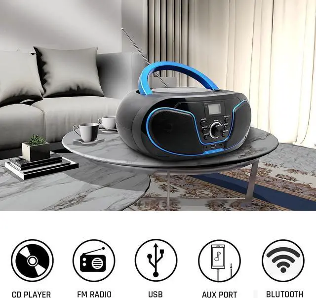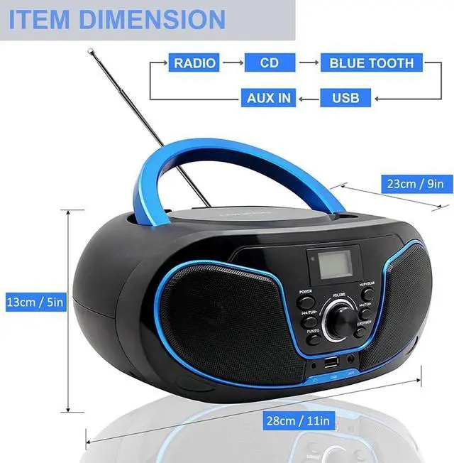 Multi-function CD Player. Portable Boombox CD Player . Blutooth HiFi Speaker . FM Radio . AUX Input . Support USB and A to B Repeater. 5 in 1 Player makes your life more colorful and bringing unforgettable feelings and memories.