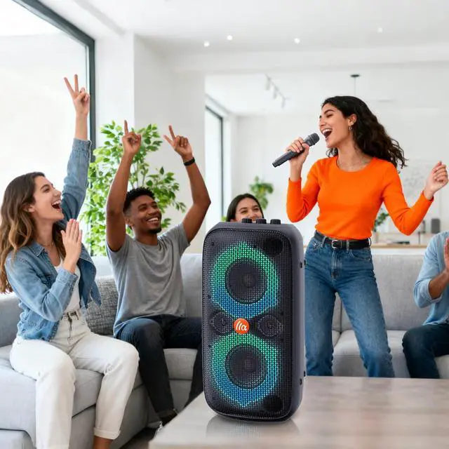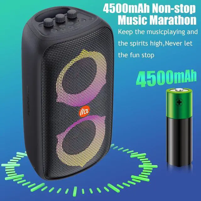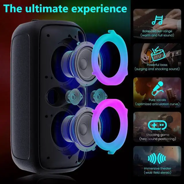 VERSATILE FEATURES: IPX4 waterproof rating, built-in LED lights, and guitar input make it perfect for various entertainment settings