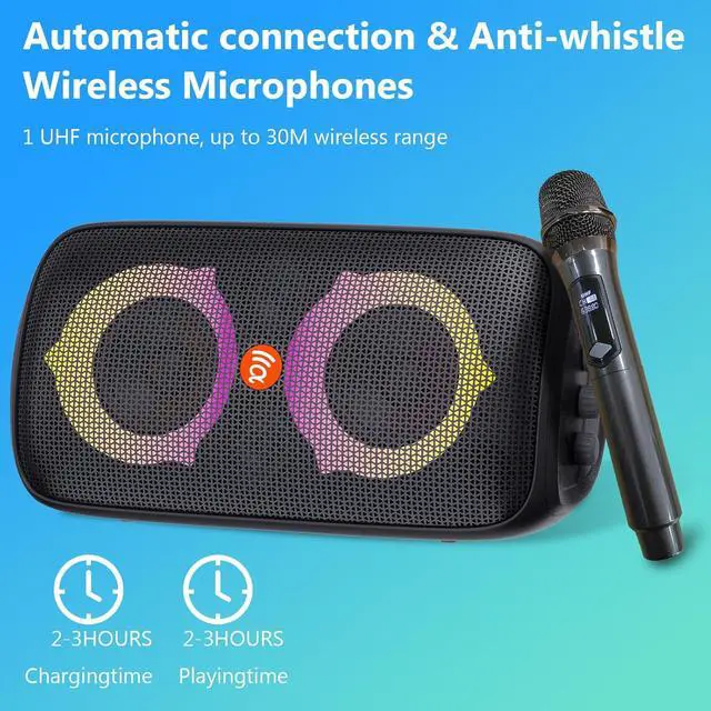 POWERFUL SOUND: 80W party speaker with UHF wireless microphone delivers crystal-clear audio with deep bass for an immersive audio experience
