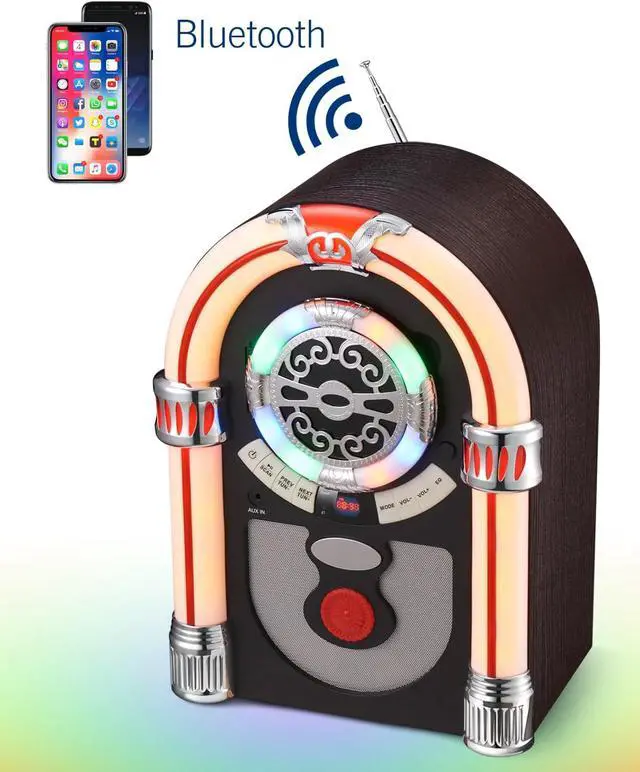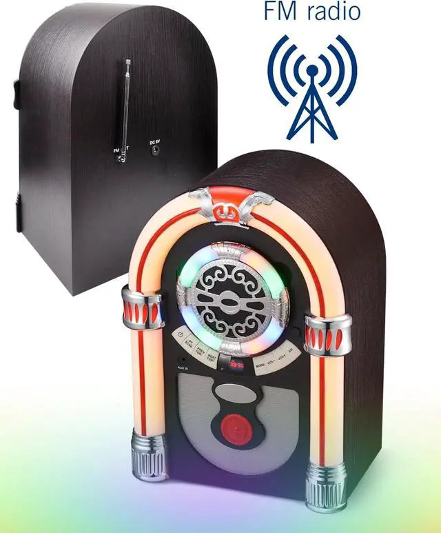 Convenient Connectivity and Versatile FunctionsGet this retro jukebox and you'll have not only a wireless music player but also a multifunctional radio! Its built - in Bluetooth enables seamless connection to any Bluetooth device within 33 feet, giving you unrestricted music enjoyment. The AUX - IN port stands by, ready to meet all your playback requirements. The FM radio can automatically scan and save up to 50 stations, keeping you informed with a wide range of news and the best tunes. Whether you're hosting an indoor gathering or simply relaxing alone, it's the perfect music companion.