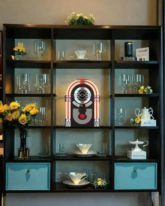 Space - saving Design: Boasting an ingenious size of 26 cm in length, 18.5 cm in width, and 37 cm in height, this product flawlessly recreates the style of a retro jukebox while cleverly optimizing space utilization. It fits effortlessly into any compact apartment or cozy bedroom, instantly becoming the center of attention.