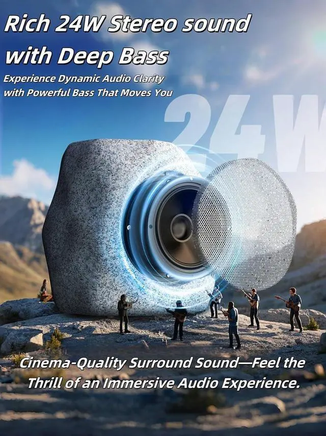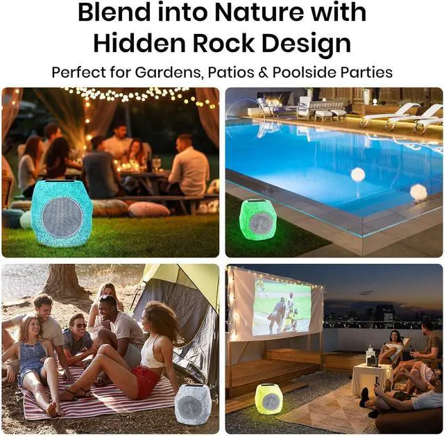 Outdoor Bluetooth Rock Speakers 48 W Stereo & Deep BassDual 24 W drivers + DSP create 360° HD sound; realistic stone shell means your wireless landscape speakers hide in plain sightideal for garden, patio, deck, pool, backyard parties.