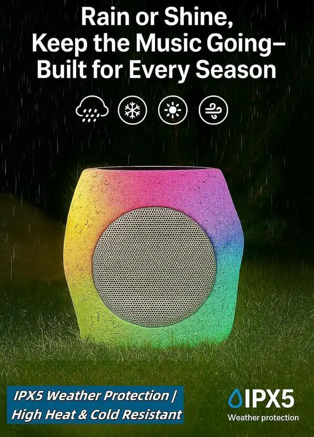 IPX5 Waterproof & AllWeather BuildFully sealed shell survives rain, splash, dust; leave these weatherproof yard speakers outside yearroundzero maintenance, zero worry.
