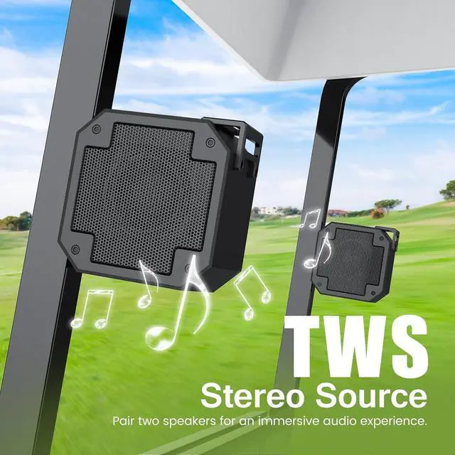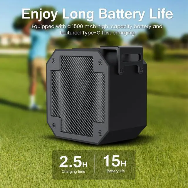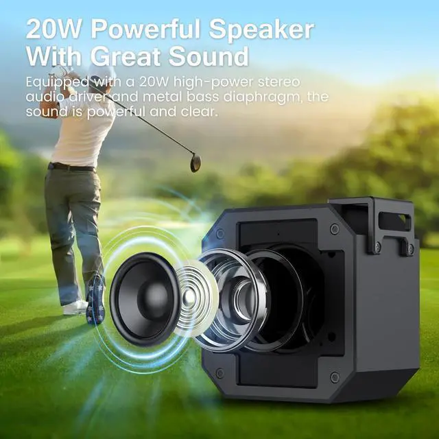 Powerful Sound & Immersive Experience: The speaker is built with a powerful 57mm large driver, delivering crystal-clear, dynamic Hi-Fi sound. With up to 20W output power, the audio is not just loudit's full and impactful. It also supports TWS pairing, allowing two speakers to connect seamlessly for instant 360° surround sound. Whether you're on the green or at the range, immerse yourself in powerful music anytime.