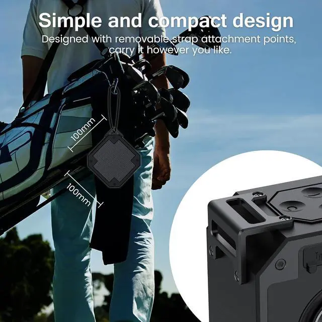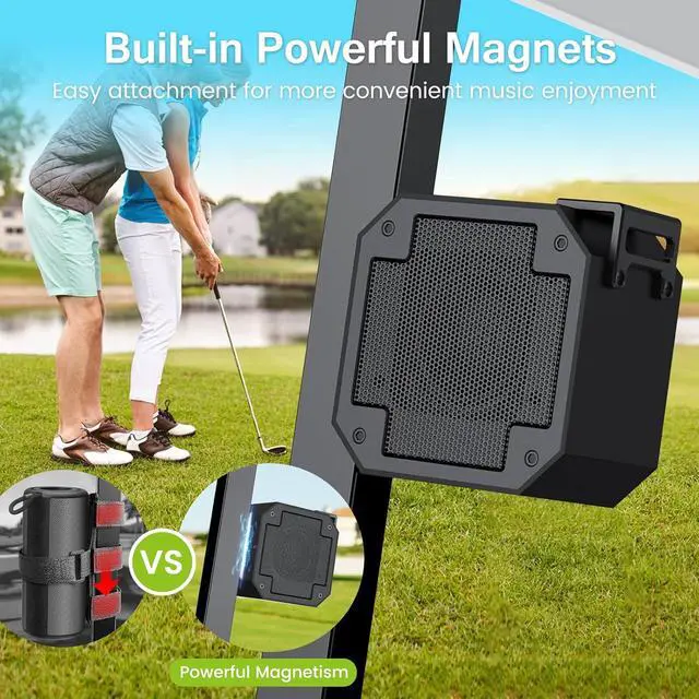 Strong Magnetic Base & Compact & Portable: This compact speaker features a powerful magnetic base that securely attaches to your golf carts metal framestaying firmly in place even on bumpy rides! Plus, its small size makes it easy to pack, and the detachable strap lets you hang it effortlessly on your golf bag, push cart, or backpack. Convenient and versatile, its the perfect on-the-go music partner for every golf lover.