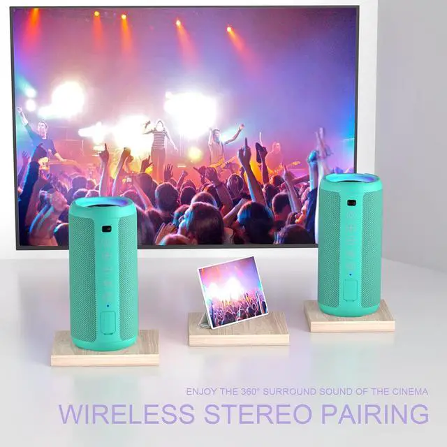[Hi-Fi Stereo Sound and Dual Pairing Function]: The bluetooth speaker equips with 24w of stereo audio drivers speaker and advanced digital signal processor, which pumps out crisp treble, detailed mids, and especially enhanced bass at any volume. You can purchase two speakers at the same time to truly enjoy the surround sound of a movie theater by using the Dual Pairing function, it's an auditory experience that's truly unparalleled.