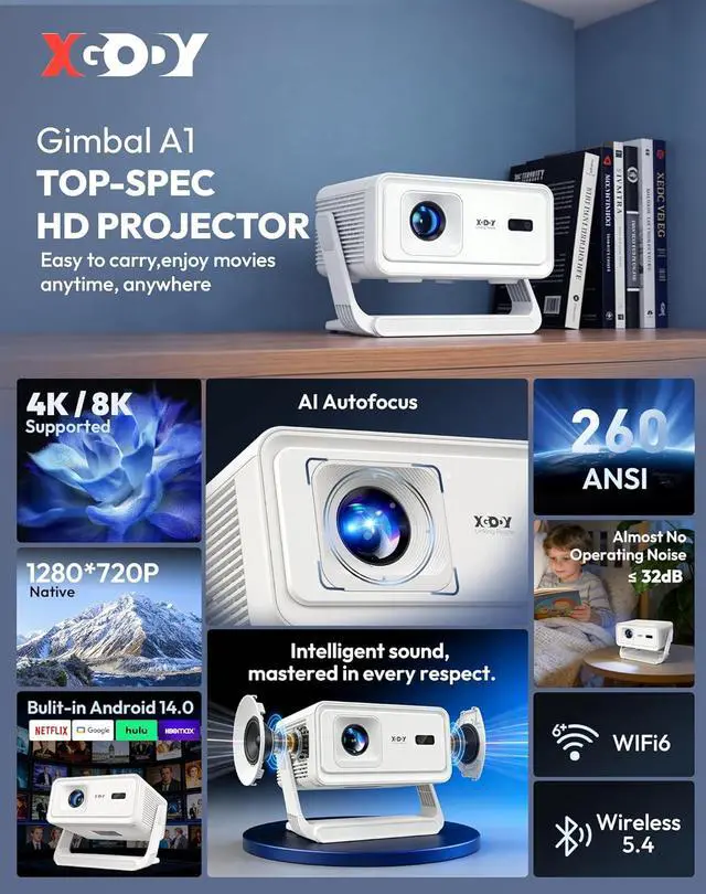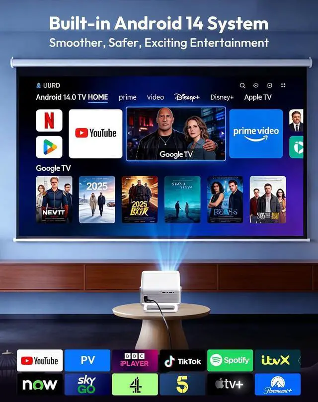 Android 14.0 Smart System: Light Up Your Private CinemaIn the world of Gimbal A1 projector, turning it on means immersion. The deeply customized Android 14.0 smart system delivers a silky-smooth control experience, with access to over a thousand apps including Netflix, YouTube, and TikTok. From the latest blockbusters to classic series, trending variety shows to niche documentariesyour private cinema never sleeps.