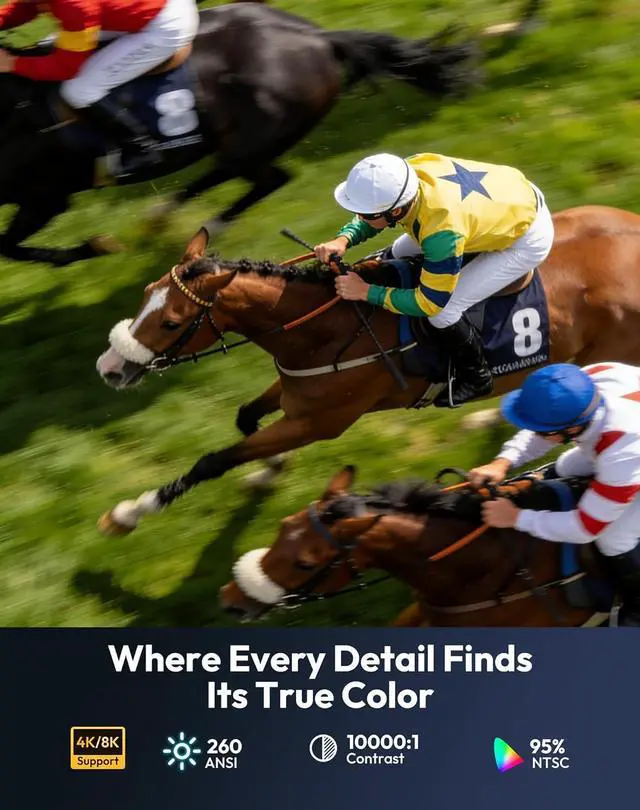 260 ANSI Lumens & Native 720P & Supports 1080P/4K: Where Details Tell the TruthIn a controlled lighting environment, 260 ANSI lumens are sufficient to present a well-layered picture. Paired with native 720P resolution and HDR10 dynamic optimization technology, colors are vibrant and accurate. Starlight in the dark night no longer blurs, and faces in backlight remain delicate. Every frame is a tribute to detail.
