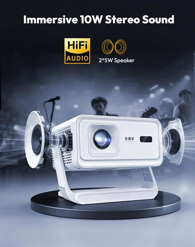 2×5W Stereo Soundstage: Sound Also Has a Visual SenseWe believe that real sound should have shape and space. The Gimbal A1 projector adopts a balanced 2×5W full-frequency stereo speaker system, professionally tuned for rich midrange, clear highs, and elastic lows. On a quiet bedroom night, the projector can lay a soft soundtrack for romance films; during weekend gatherings with friends, the projector can also recreate a live concert experience in the living room.
