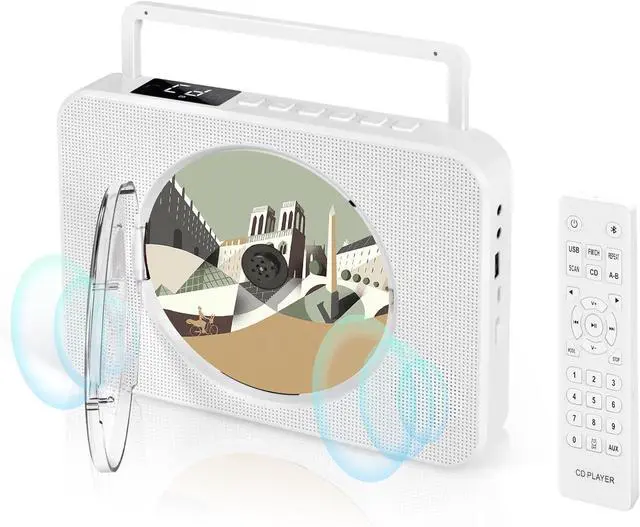 Built-in Dual-Speaker Bluetooth CD Player: Wirelessly stream music from your phone or tablet via the CD player with Bluetooth, instantly transforming it into a portable Bluetooth speaker. Featuring two built-in Hi-Fi speakers, this CD player delivers exceptional sound quality, with crystal-clear audio that elevates your listening experience. Note: Does not support connecting Bluetooth headphones or Bluetooth speakers