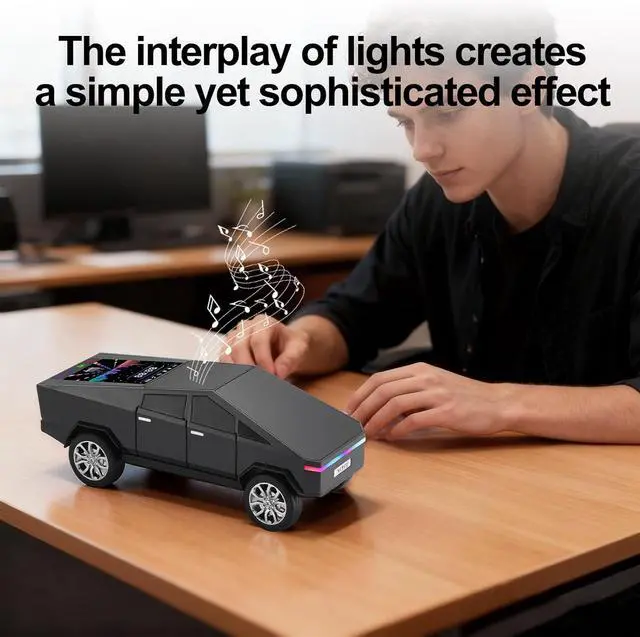 Futuristic Pickup Replica with LED Display Screen Modern truck-based design with movable wheels and an integrated LED display screen that shows basic mode and playback information.