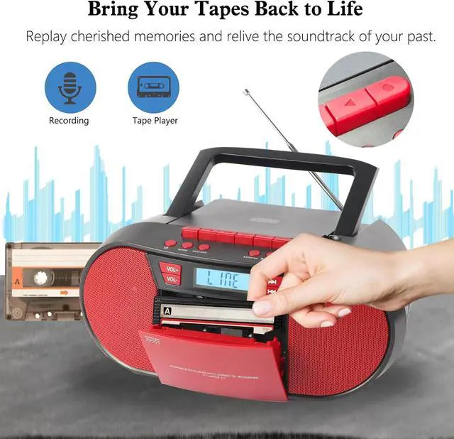 Cassette Tape Recorder & PlayerThis cassette tape player unleashes your personalized experience with built-in recording capabilities! Create personalized mix tapes from CDs, radio, Bluetooth audio, USB, AUX, and external sounds. Relive the magic of tapes with modern precision