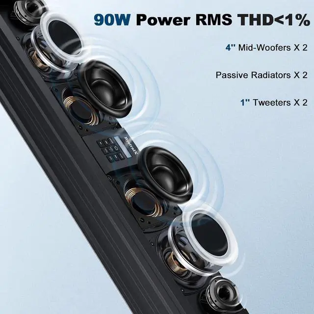 Digital Signal Processing: Because of the powerful bass technology, it can create full, loud, and dynamic bass as low as 48 Hz even in a limited space. The digital signal processing ensures that each speaker works independently, resulting in distortion-free sound reproduction