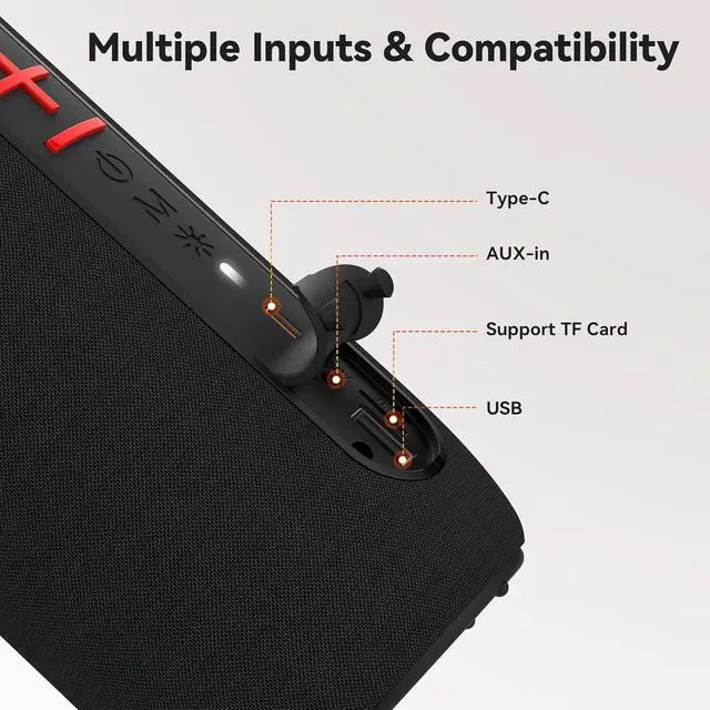 RGB Party Lights ShowTransform music experience with the dynamic RGB lighting effects of this wireless Bluetooth speaker. Choose from multiple modes, including Lights Off, Solid Color, Breath Gradient, and Lights Blink. These lights sync perfectly with your music, creating a captivating visual spectacle that enhances any occasion. Whether you're using it as a portable speaker at a party or a waterproof speaker by the pool,it takes your audio experience to a whole new level.