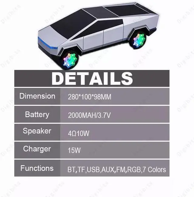 Innovative Design: This cyberpunk-inspired vehicle speaker combines a futuristic car design with RGB lighting effects for an immersive audio experience.